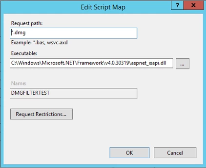 <add path="*.dmg" verb="*" type="System.Web.HttpMethodNotAllowedHandler" />