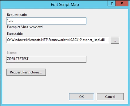 But back to what you've done and the documentation. Differences between the documentation and what you've done: I see under Request Path, you have '*.zip'. In the documentation, there is no asterisk.