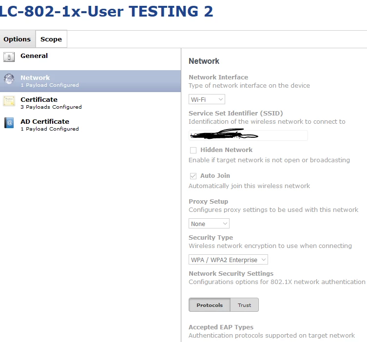 Our current environment has a config profile scoped to all machines to setup an AD cert and configure wifi using the AD cert. We've migrated to a new CA server and need to reconfigure this. I've tried updating the existing profile, but upon updating, a majority of machines fail over wifi since it tries to remove the profile(kicks them off wifi) before applying the new settings. Wired connection appears to be fine.