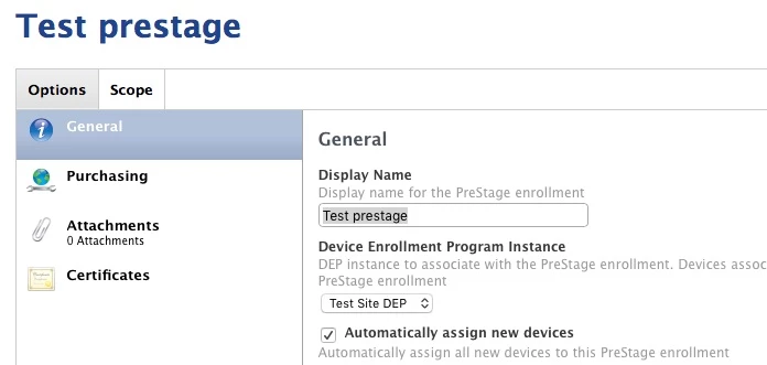 • Choose “Automatically assign new devices” if you want all serial numbers associated to this site to be in the scope for this prestage.
