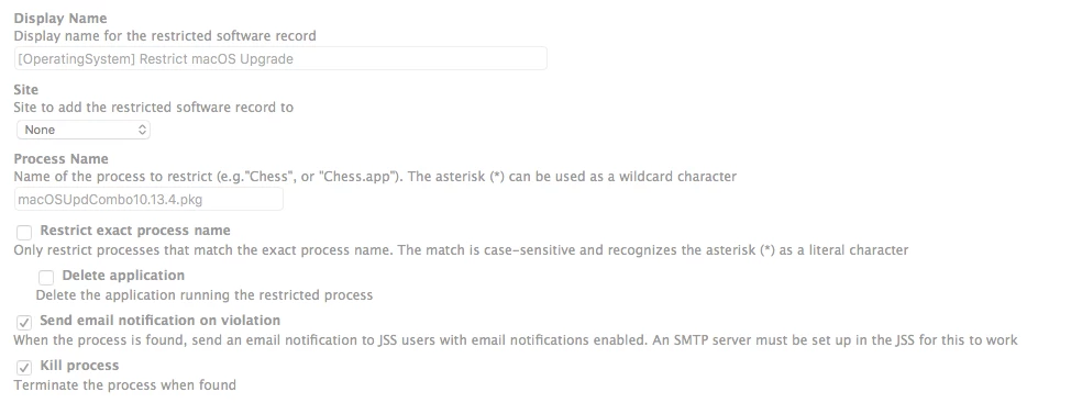 We've had success with blocking people from upgrading from Sierra to High Sierra (Users have to upgrade from Self Service, cannot be done via App Store). But for this updater, the process is "Installer", and we don't want to block that, it will block everything from installing.