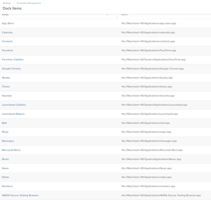 Every app on the dock natively, or that is going to be added to the dock, must be accounted for in Settings -> Computer Management -> Dock Items.