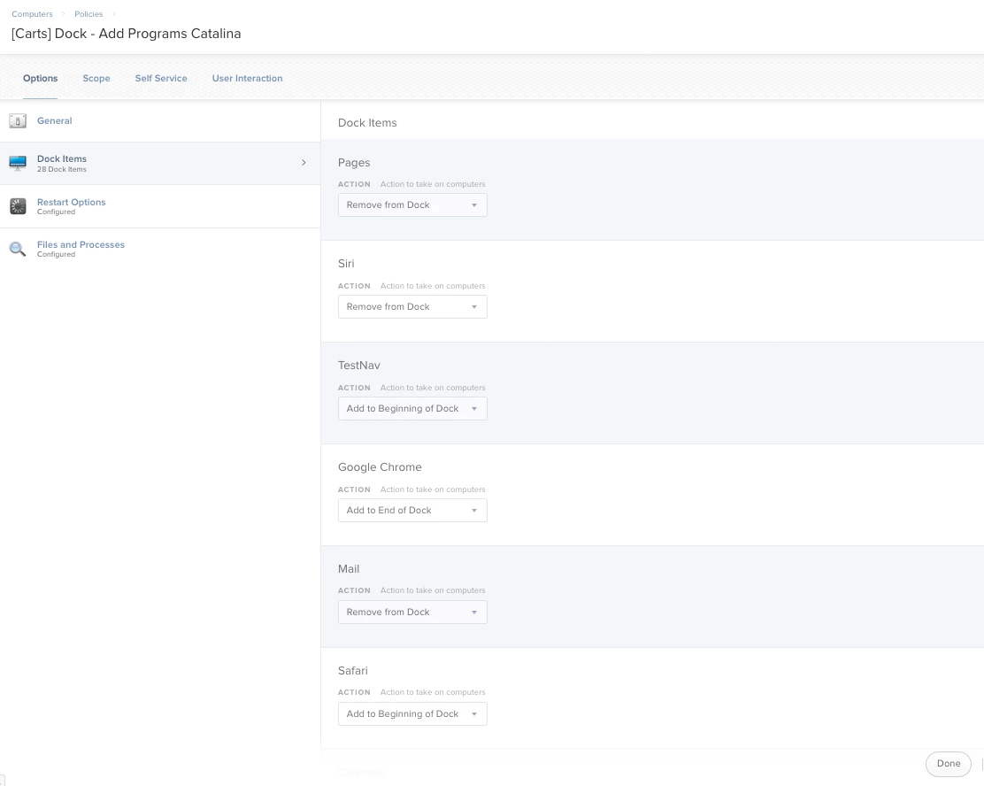 Question, I am using Policies to populate the dock. There is also the option of using a configuration profile. What do you like to use, and why?