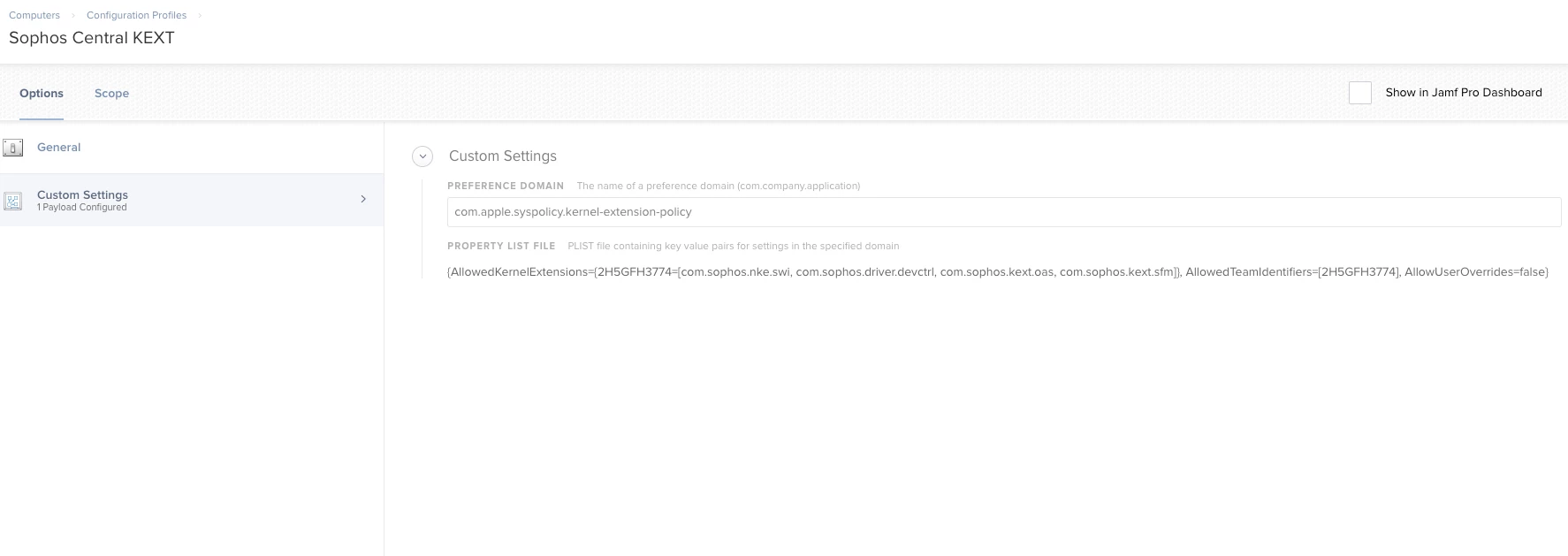 I'm running on JAMF PRO 10.2.2 and using inbuilt KEXT profile payload.