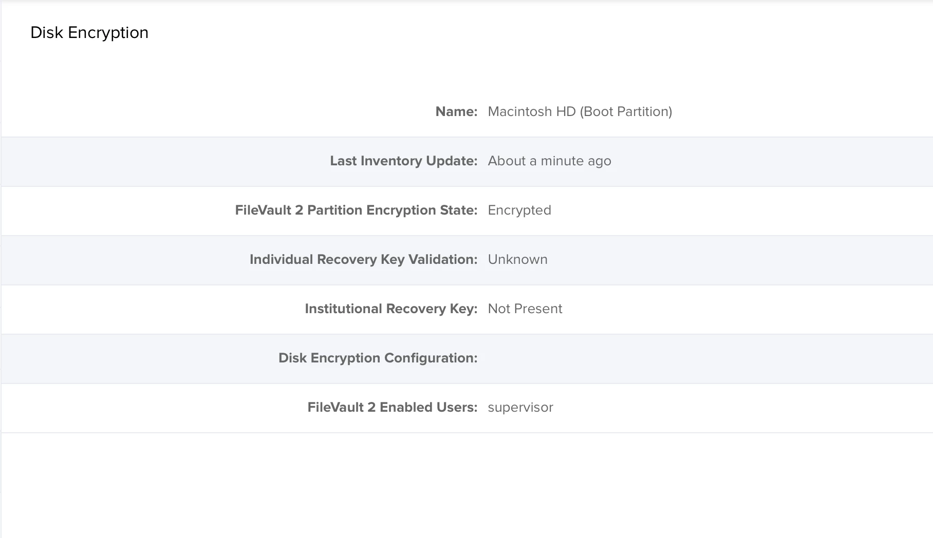 As the new Macs are not showing as encrypted the FileVault policies we have in place are not being applied, as they don't fall into the smart group.