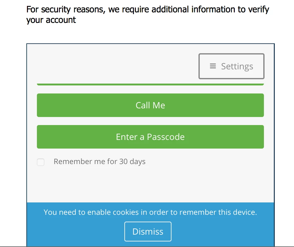 I am unable to check off “Remember me for 30 days” due to cookies not being enabled