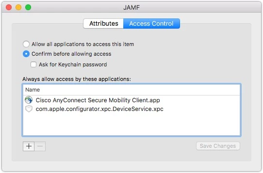 So, I'm using Composer to watch for the install and set the vpn server for Cisco AnyConnect and create a package. I can then also deploy this out to clients and it installs ok. But whenever it goes to connect, AnyConnect wants admin credentials like three times. Has anyone been able to get around this? I do use client certificates to authenticate. I've read that others who have had a similar problem can at least click deny a few times and then AnyConnect will connect. Not the case for me though. Thanks.