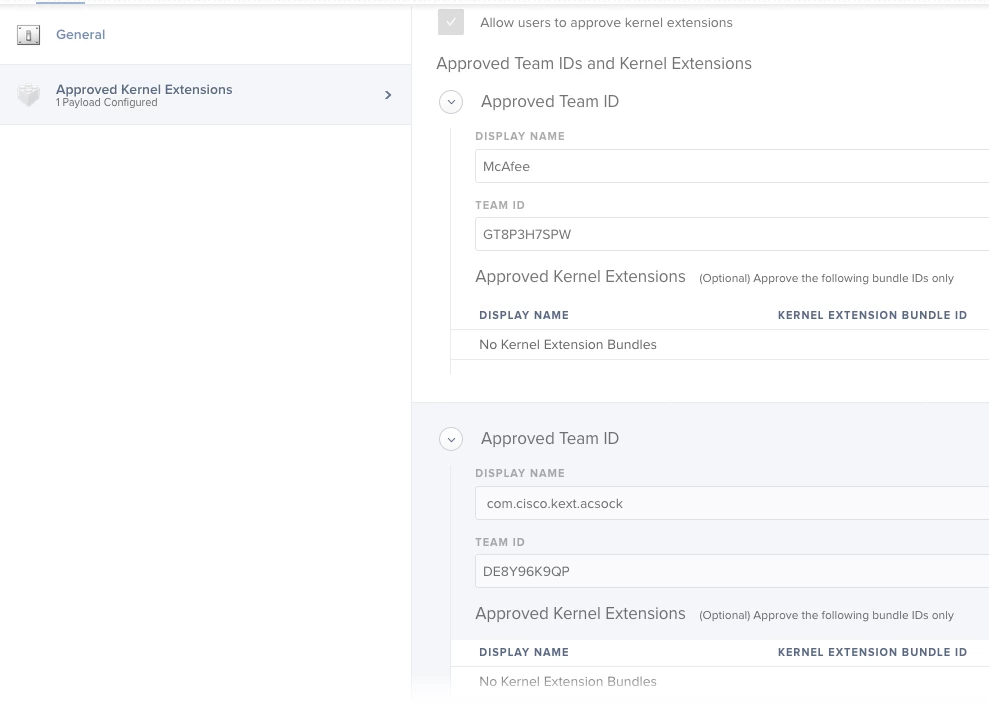 Kernel Extension and System Extension Allows for the Configuration Profile.