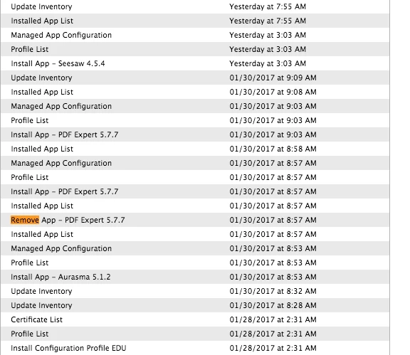 I can see the Remove command in the screenshot below that shows the JSS removing PDF Expert. I cannot find any Remove command for Showbie, however.