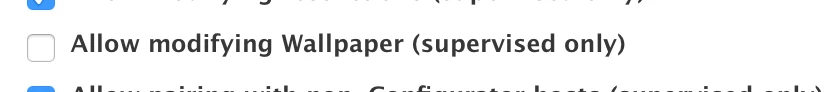 I found this option to disable the modification of wallpapers in a configuration profile. So I built a custom CP to test it out and it still allowed me to modify the wallpaper....anyone else played with this before?