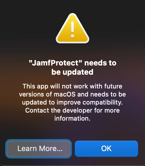 I've verified that the computer(s) are running the latest version of the agent. I'm guessing that Jamf Protect is using Python 2.7 or earlier? (per this thread: https://developer.apple.com/forums/thread/691799)