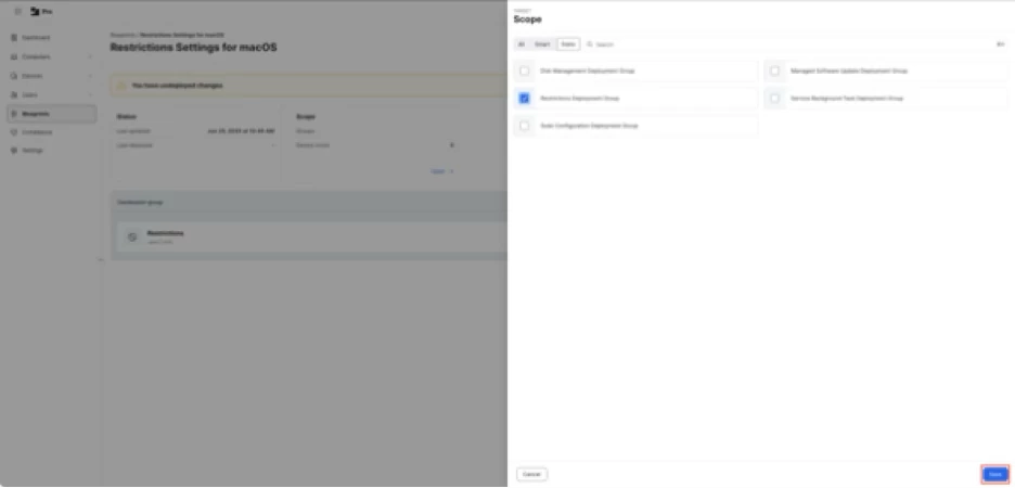 For this example, I’m selecting a static group named Restrictions Deployment Group.