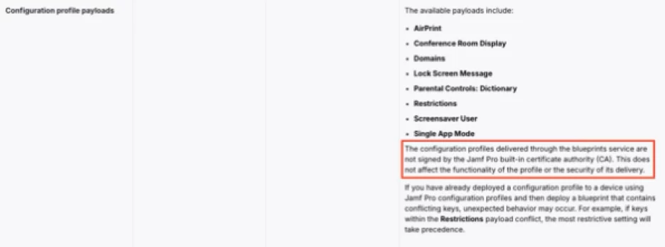 Note: The MDM profiles delivered via Blueprints are not signed. This is mentioned in the documentation available via the link below: