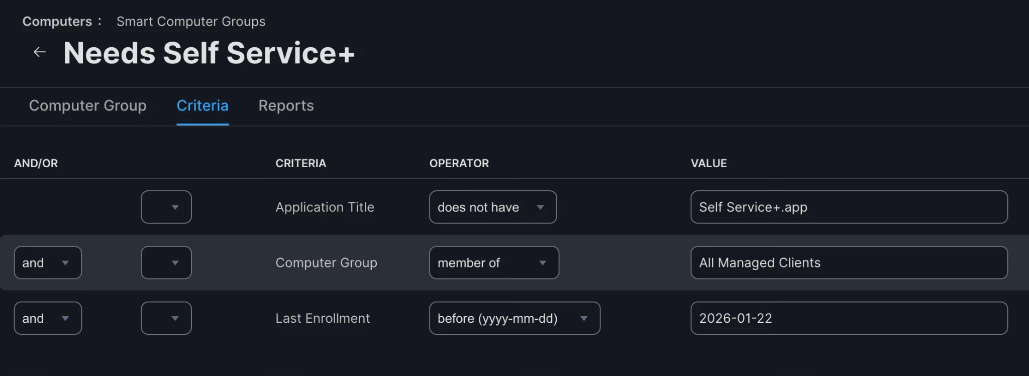 Step 3.1 - Create a Smart Group: “Has both Self Service and Self Service+”
