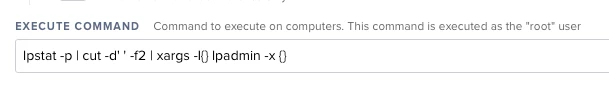 And yes, you can accomplish a lot of this via the Jamf GUI, but unless you add the printers to Jamf first using Jamf Admin, you will not be able to remove the printers. Of course one option would be to just remove all printers from the system using a command like lpstat -p | cut -d' ' -f2 | xargs -I{} lpadmin -x {}