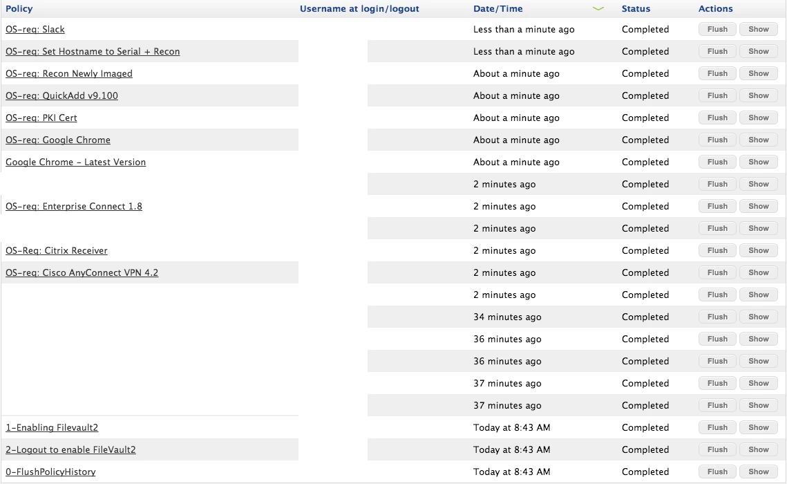 If i look at the Management Tab - Policies and it lists all the policies that should be running at check-in.