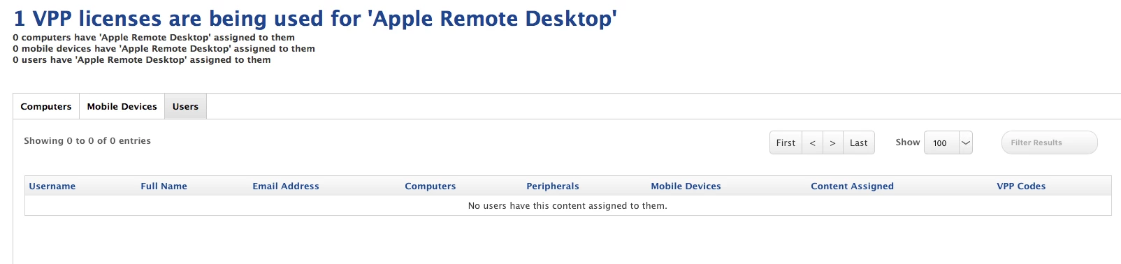 1 VPP licenses are being used for 'Apple Remote Desktop'