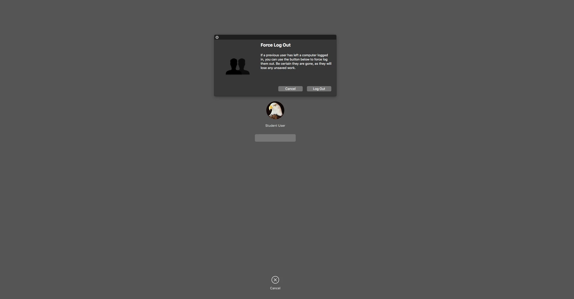 Running into a scenario in our Mac Labs where users are leaving their accounts logged in, requiring the next person to force reboot the computer. I know there's the option to force logout through a configuration profile based on idle time, but I'm hoping to give the option to log them out or cancel and log back in if the user is actually still around.